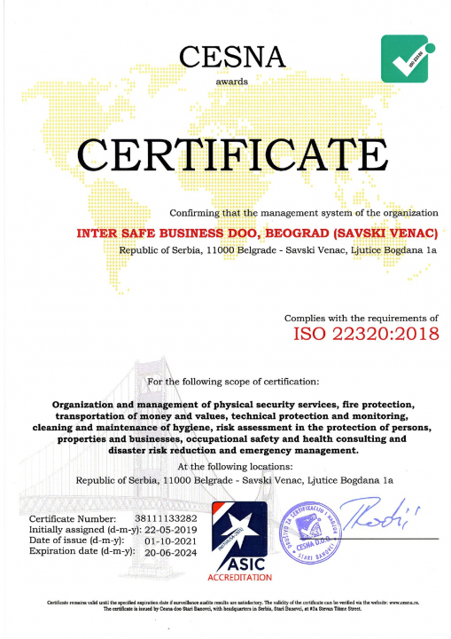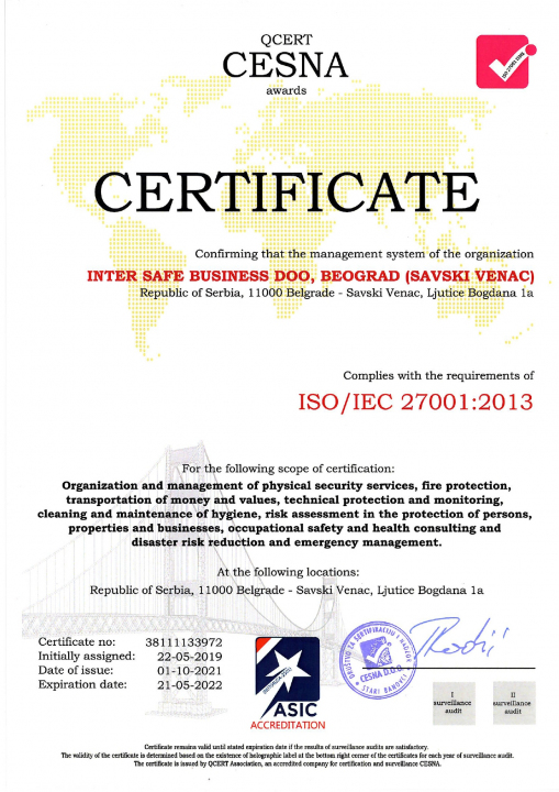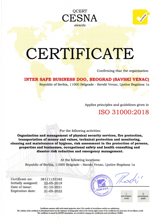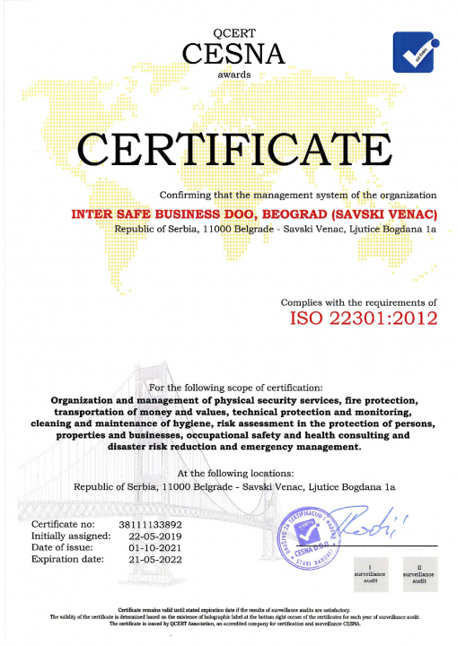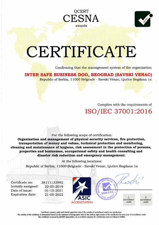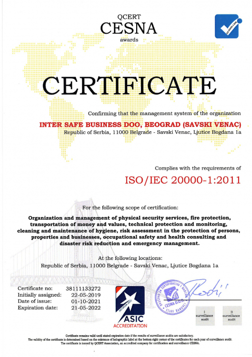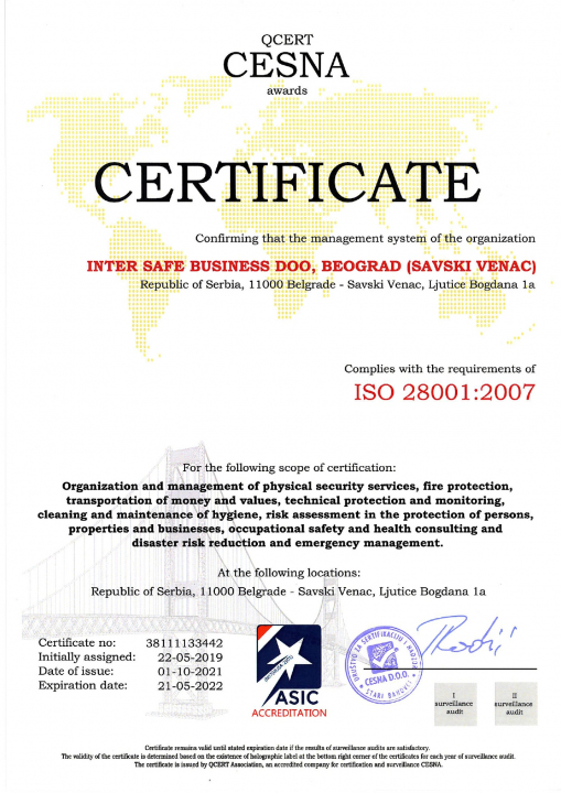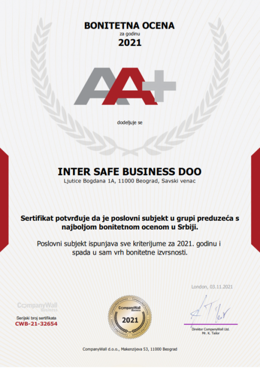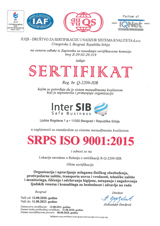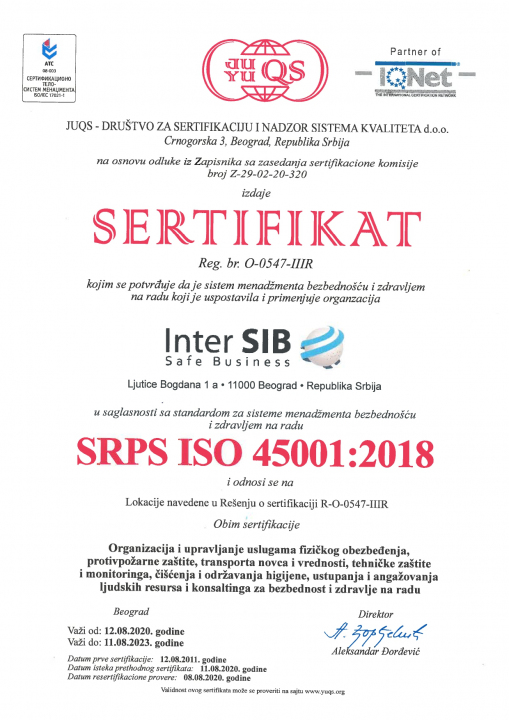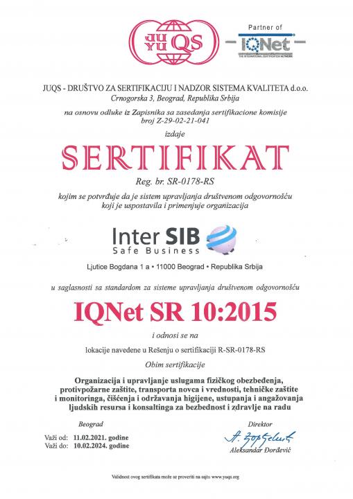 U svojoj delatnsti kompanija "INTER SIB" se bazira na striktnom poštovanju važećih propisa i zakona Republike Srbije, kao i međunarodnog Standarda kvaliteta ISO SRPS 9001:2008 i Standardnom za sisteme upravljanja zaštitom zdravlja i bezbednošću na radu SRPS OHSAS 18001:2008.